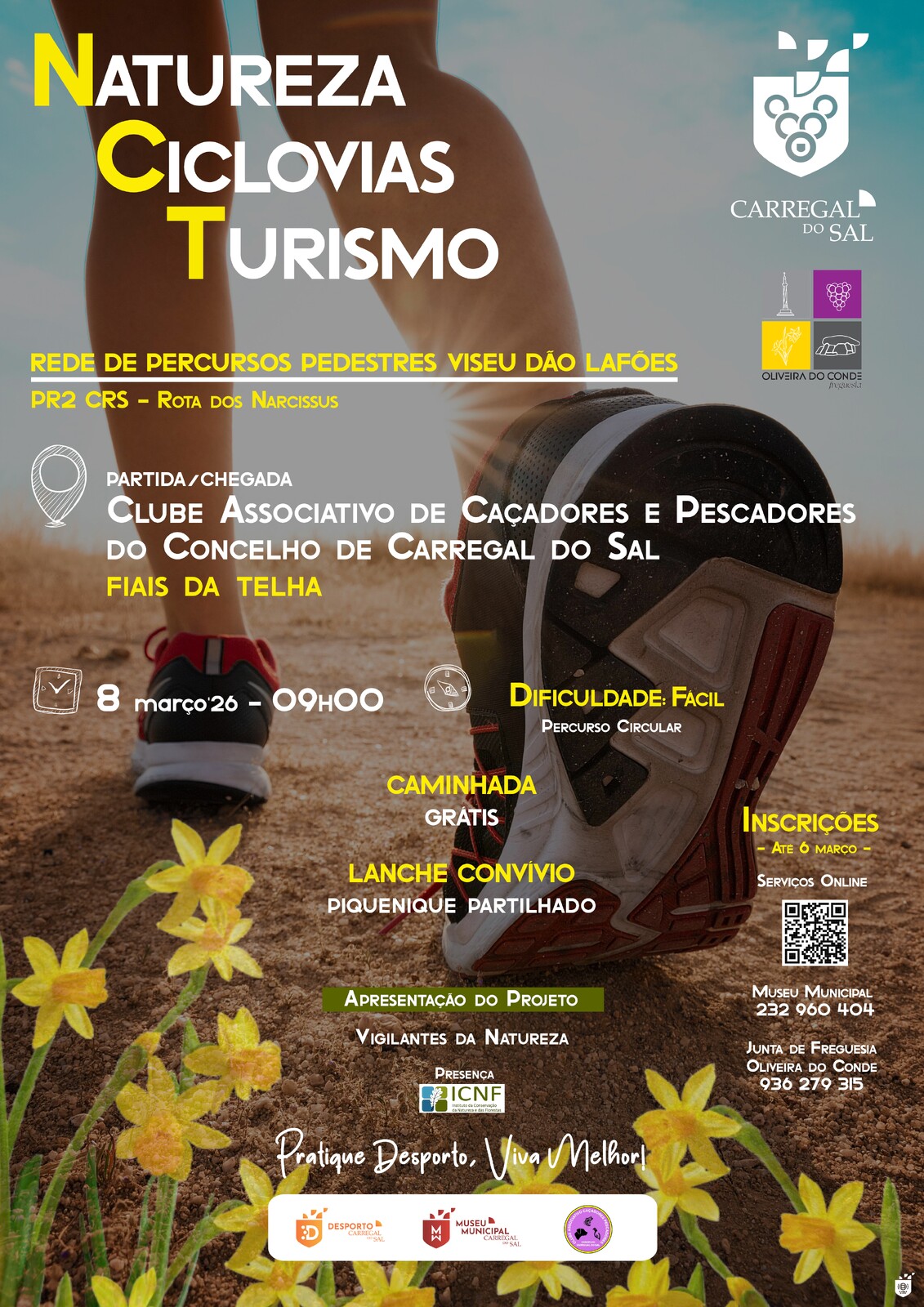 No âmbito da iniciativa “Natureza, Ciclovias e Turismo”, realiza-se no próximo dia 8 de março, pelas 09h00, a caminhada PR2 CRS – Rota dos Narcissus, integrada na Rede de Percursos Pedestres Viseu Dão Lafões.