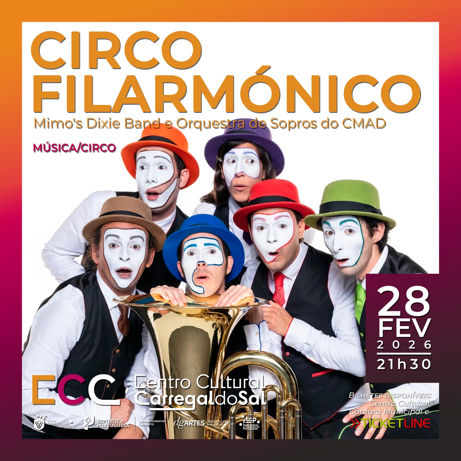 Circo Filarmónico – Mimos é um espetáculo criado a partir da colaboração entre a Mimo’s Dixie Band e a Orquestra de Sopros do CMAD. A proposta assenta na fusão entre a tradição filarmónica, o jazz dixieland de inspiração “New Orleans” e um forte sentido de espetáculo.